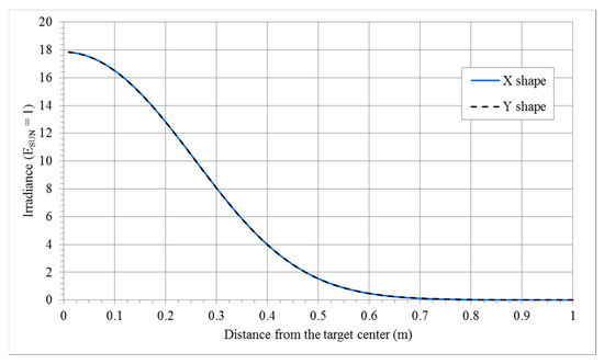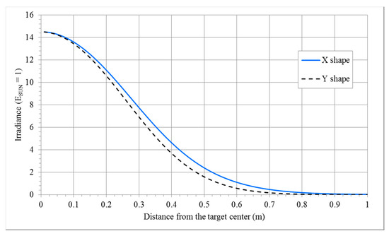 Figure 16, which reports the irradiance variation on the spot for two different distances from the target.