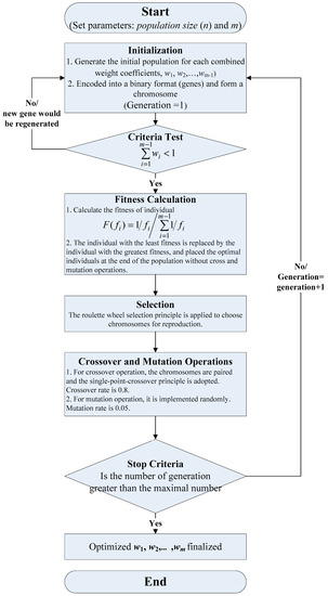 The flowchart of determining combined weight coefficients by a genetic algorithm.