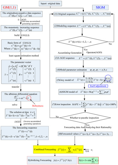 The remainder of this article is organized as follows. The basic formulation of the GM, SIGM, and the modeling details of the proposed GM-S-SIGM-GA model are demonstrated in Section 2. The numerical natural gas consumption/demand data from China, the forecasting results, and the forecasting accuracy comparisons among the proposed model and other alternative models are demonstrated in Section 3. Finally, Section 4 concludes this paper.