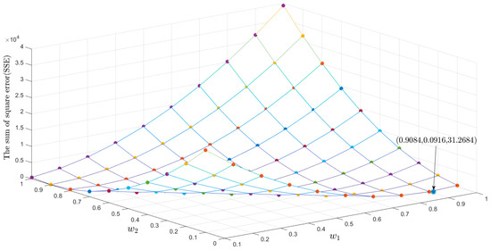 Then, the square sum of the forecasting residual (SSR), , is shown as Equation (24):