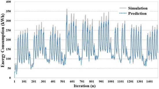 - The prediction model embedded in the control algorithm showed an acceptable prediction accuracy. For the number of cycles (1488 h), the results revealed the CVRMSE of 10.3% between the simulated and predicted cooling energy.