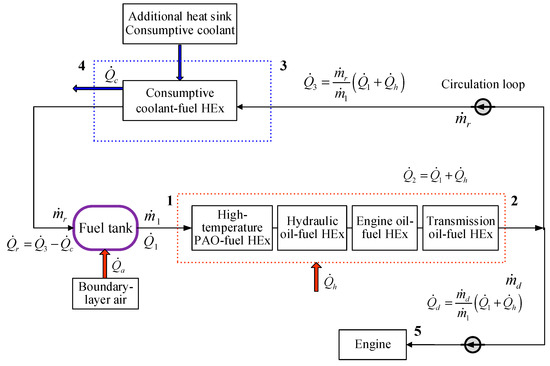 - Doman, D.B. Fuel flow topology and control for extending aircraft thermal endurance. J. Thermophys. Heat Transfer 2017, 32, 35–50. [Google Scholar] [CrossRef]