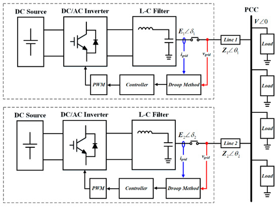 Schematic diagram of droop-controlled inverter-based MG.