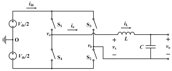 Equivalent circuit model of single-phase full-bridge inverter.