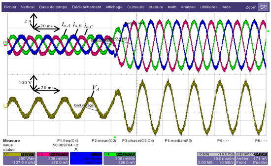 Output current control: output currents and output voltage of the phase A.