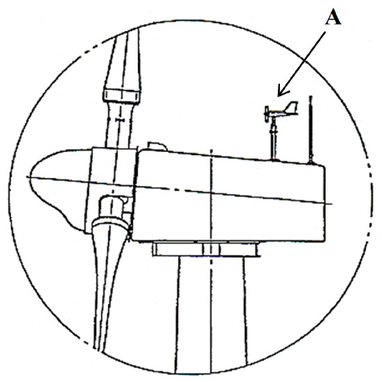 Propeller vane anemometer mounted on a WT nacelle (indicated by “A”).