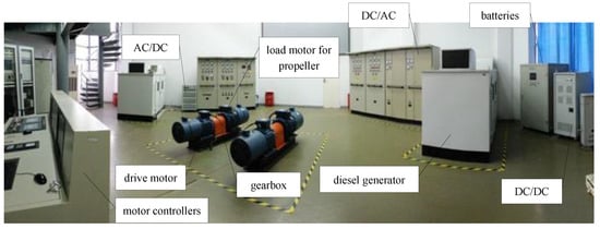 The experimental platform is equipped with 16 lithium iron phosphate batteries having a total capacity of 100 Ah, two diesel generators with rated power of 30 kW, and two propulsion motors having rated output power of 35 kW. The parameters of the platform are: 92 t of displacement, 694.2 of drag coefficient, 0.8 m of propeller diameter, and 1500 revolutions per minute of propeller speed. The main parameters of the experimental platform are given in Table 1. Using the load simulation software on the computer, various parameters are set, such as the displacement, drag coefficient, propeller diameter, and loading and unloading control of the propeller. More details can be found in []. It should be noted that the interference to a real operating ship due to waves, weather or changes in displacement is ignored in this paper, which will be considered in our future work.