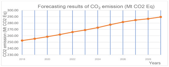 The forecasting results of CO2 emissions from 2018 to 2029 in Thailand.