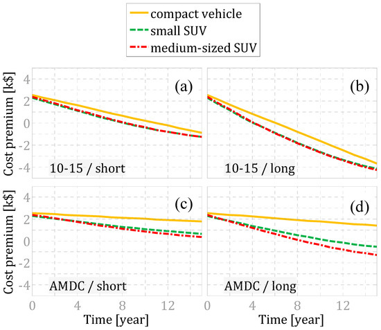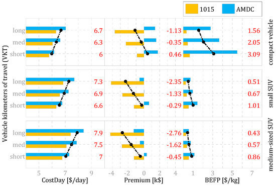 Two different values of vehicle miles traveled (VKT), namely 10,000 km/year (short VKT) and 20,000 km/year (long VKT), have been considered.