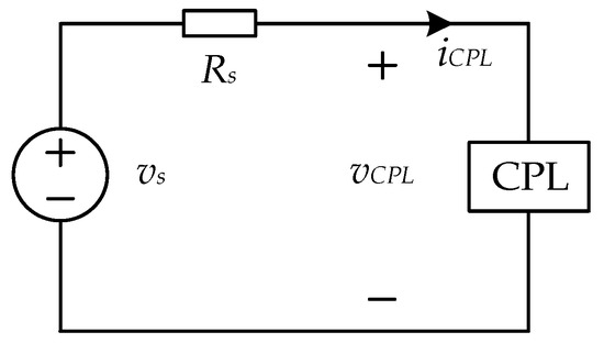 Because VSRs are often used as grid interface converters, their loads are usually not resistors, but power electronic converters. Power electronic converters are usually controlled by closed loops; therefore, they are regarded as CPLs. Taking the DC/DC converter as an example of the load, when the input current suddenly rises, the input voltage will decrease in order to maintain the output constant. The characteristic of maintaining constant power is called the CPL characteristic. This characteristic is bad for the stability, which will be explained below.