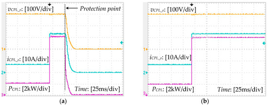 Figure 10 shows the main operating waveforms of the CPL when load power is changed from 2 kW to 10 kW. It can be seen that after the load power jumped, the closed-loop control of CPL makes the output voltage vCPL_o quickly back to 300 V, and the oscillation is very small. The CPL output current iCPL_o and output power PCPL also quickly reached the target value, which satisfies the CPL characteristic. This shows that the results of Figure 9 is meaningful and sufficient.