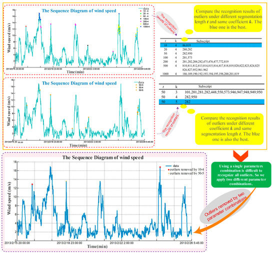 The scope of outliers that need to be removed can be defined by setting the segmentation length and the coefficient determining the threshold size. For max-min outliers in data with lower volatility, is applied. However, is always set in volatile data.