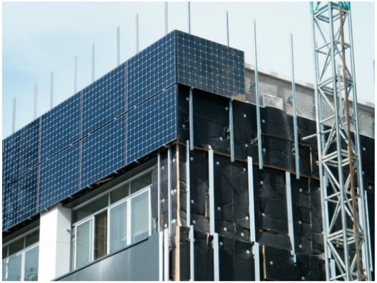 Although the building sector in the EU is the largest single energy consumer in Europe, absorbing 40% of final energy, and about 75% of buildings are energy inefficient, only 0.4–1.2% of the stock is renovated each year. This involves the need for their energy retrofit to save energy and to reduce CO2 emissions [24]. However, addressing renovation with BIPV has the double benefit to combining energy-retrofit, to reduce energy demand, with photovoltaic generation to participate in the required energy. Although only one-third of European BIPV cases correspond to retrofit so far [10] BIPV renovation solutions can be found in the literature [25]. Retrofit of residential buildings with BIPV has been recently addressed by Evola and Margan [26], with a solution of façade with PV modules combined with ceramic panels. In addition, Eicker et al. [27] and Hachem et al. [28] studied the convenience of the integration of PV modules in the retrofit of residential buildings in Northern Europe and Canada, respectively.