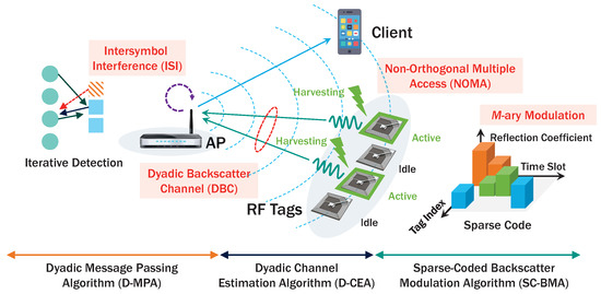 - Sparse-coded backscatter modulation algorithm (SC-BMA) supporting M-ary modulation for AmBC with small-form factors. The modulation can constitute multi-dimensional signal space, which can be easily implemented for passive RF tags without increasing form-factor and exempted from complex signal processing burdening low-cost RF tags.