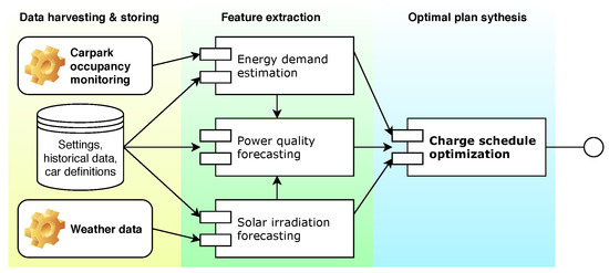For each module, its inputs and outputs are described in further sections with the final charge schedule optimization performed by evolutionary based on MOO.