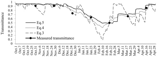 Estimated daily changes in transmittance and measured transmittances.