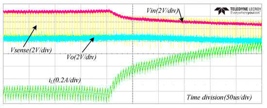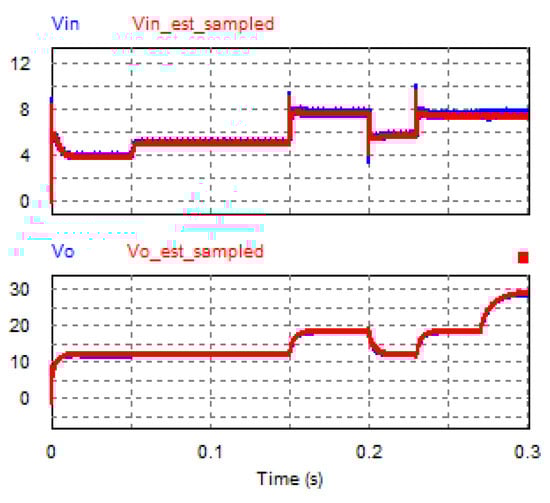 In Figure 14, voltage sensing technique was tested under transient conditions, where it clearly shows how the reconstructed voltages follow the input and output voltages smoothly and justify using it as the only voltage to be sensed in order to completely close the control loop of the converter and to apply continuous monitoring over the output voltage in the case of battery charging application.