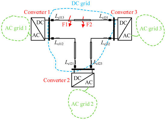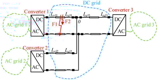 In recent years, DC distribution networks and AC/DC hybrid distribution networks are attracting increasing attention due to the increasing demand for distributed generation and the need for regional grid interconnection [1,2]. The AC/DC hybrid distribution network can satisfy the above requirements and achieve the interconnection and transition between the AC distribution network and the DC distribution network. Several AC distribution networks can be connected through DC lines, which can form a DC distribution network. Then, the entire AC and DC network can be called a regional multi-terminal AC/DC hybrid distribution network [3]. Due to the low impedance of the DC distribution network, the fault currents will increase rapidly after a DC fault [4]. More seriously, in the multi-terminal AC/DC hybrid distribution network, the fault currents of different converters are superimposed over each other, which results in the higher demands on the semiconductor devices in the system. If the fault cannot be detected as soon as possible and the faulty line is not isolated timely, the entire system will withstand significant losses. Therefore, it is necessary to carry out research on the fast detection method of DC faults in a multi-terminal AC/DC hybrid distribution network.