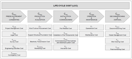 - Espinosa, I.A. Life Cycle Costing of Offshore Wind Turbines. Master’s Thesis, Cranfield University, Bedford, UK, 2014. [Google Scholar]