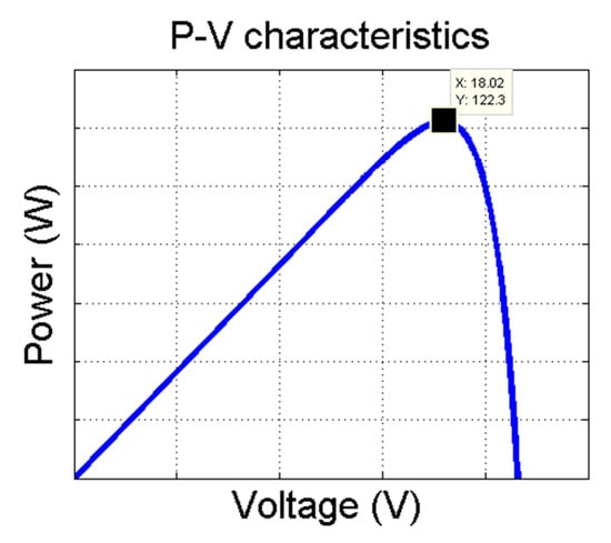 In the presence of the P-V characteristics, the maximum power of the photovoltaic module can be tracked. For instance, the marked point in