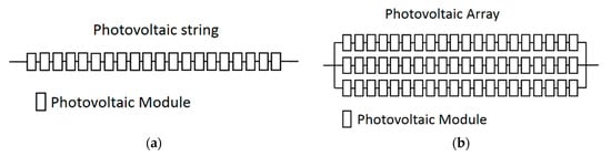 Figure 2. In general, more than 1000 photovoltaic modules are employed in a megawatt-scale photovoltaic system to provide megawatts of electrical power production. These photovoltaic modules cannot only be connected in series as this will introduce an extremely high output voltage which makes it unfit for grid-connected inverters and energy storage purposes. Therefore, parallel connection is employed, as well as series connection, to connect these photovoltaic modules. Usually, multiple photovoltaic strings are formed by connecting multiple photovoltaic modules in series. These photovoltaic strings are then connected in parallel to form the photovoltaic array in the megawatts scale photovoltaic plant. Similar to the photovoltaic module, the P-V characteristics of a photovoltaic string/array need to be determined in order to track and harvest the maximum power from the photovoltaic string/array.