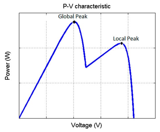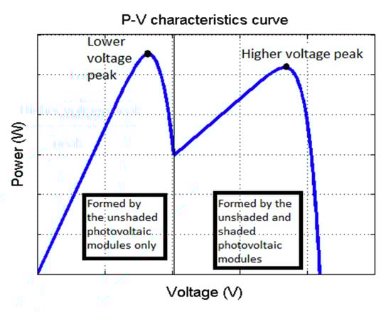 20]. When partial shading takes place, multiple peaks appear on the P-V characteristics due to the use of a bypass diode [