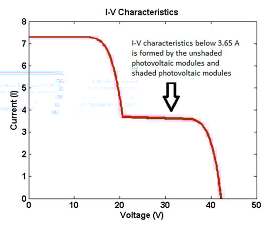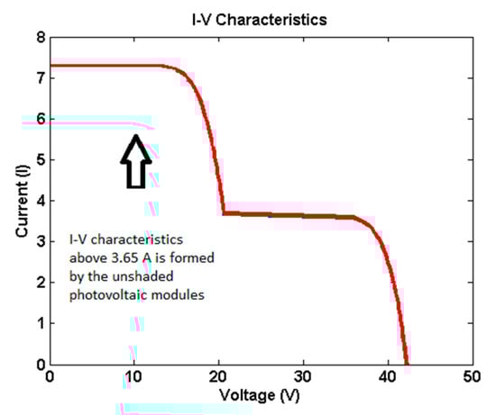 Figure 15. Therefore, the I-V characteristics of the photovoltaic string above 3.65 A are formed by the unshaded photovoltaic modules only, as illustrated in