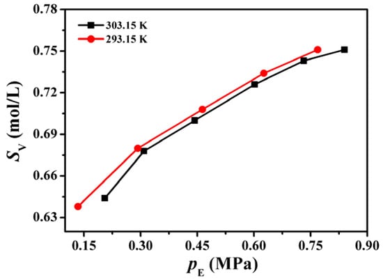 where pE represents the equilibrium pressure of the sapphire cell and ZE represents the compressibility factor corresponding to T and pE. VE represents the effective volume of the equilibrium gas mixture phase in the sapphire cell at the end of each experiment.