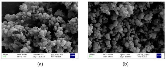Comparison of the SEM images of fresh ZIF-8 and recycled ZIF-8 from a ZIF-8/water-glycol slurry after the separation of C3H6/H2. (a) fresh ZIF-8; (b) recycled ZIF-8.