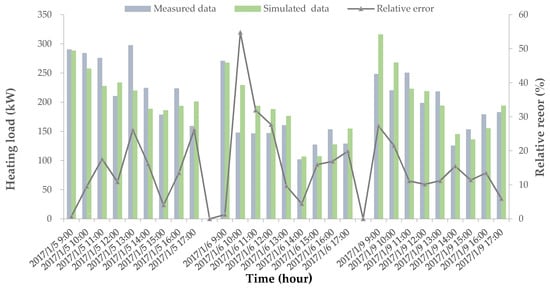 The result is shown in Figure 5. The average relative error between the measured data and the simulated data was 16.1%, which is acceptable considering of the limitations of the on-site tests and measurement instruments. Therefore, the simulation load can be regarded as the real load to establish the database.