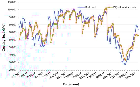 As can be seen from the figures above, the prediction results of P2 and P3 are still different from the actual load at some points, but P3 is closer to the real load from the overall level than P2, especially from 10th to 24th July. This proves that the uncertainty analysis of weather forecast data for cooling load forecasting based on MCM is beneficial to improve the accuracy of load prediction.
