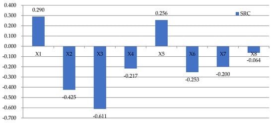 Under the premise that the input variables are independent, the SRCs show the importance of each factor through moving each factor from its expected value by a fixed fraction of its standard deviation while keeping all other factors at their expected values [20]. Calculating the SRCs means to perform the regression analysis, with input and output parameters normalized to zero and standard deviation one. A positive sign indicates that the input is positively correlated with the output, while a negative sign indicates a negative correlation. The importance of these factors can be ranked according to the absolute value of the SRCs.