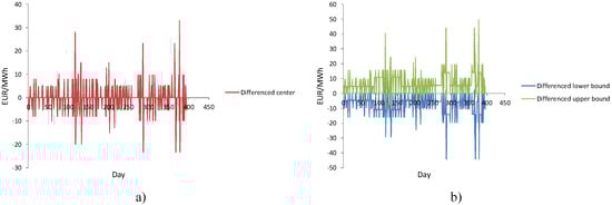 Equation (19) represents values for forecasting the first-order differenced series, but we want to forecast monitored electricity price series. Therefore, we must transform these values into the form as follows: