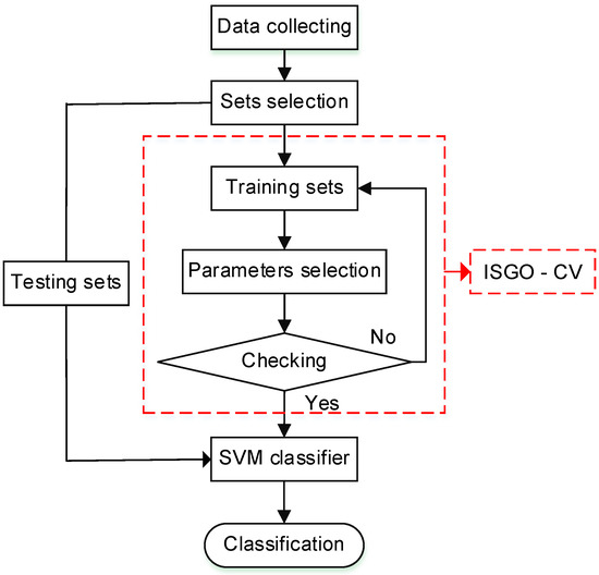 Flowchart of classification based on the improved social group optimization (ISGOSVM). ISGO-CV: ISGO and cross-classification.