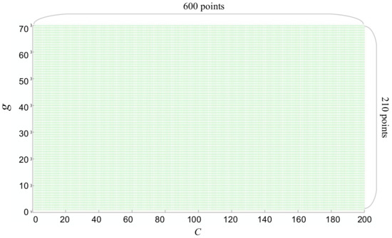 Samples set containing 126,000 sample points set up in the search scope of C and g.