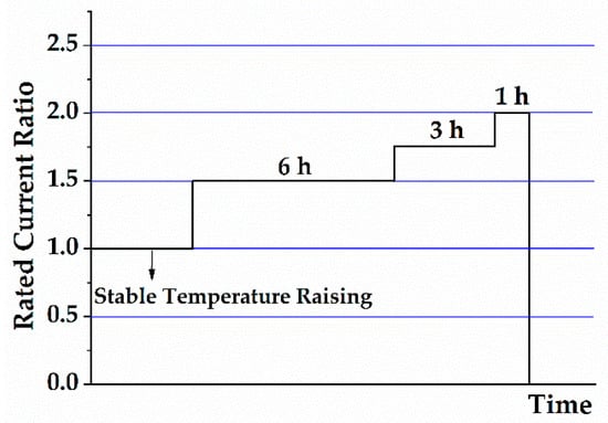 The State Grid Corporation of China published technical guidance for overloading rural transformers in 2014 [1], and identified the typical loading curve. China Southern Power Grid released a similar typical loading curve, shown in Figure 1 [2]. On the basis of the normal temperature-rise test requirements, the transformer should meet the requirement for continuous operation of 6 h at 1.5 times rated power, 3 h at 1.75 times rated power, and 1 h at 2 times rated power. A conventional insulation system, Kraft paper and mineral oil, has been utilized as a principal insulation system in liquid-immersed transformers. A typical thermal class of Kraft paper is 105 °C, which allows an average winding temperature rise of 55 K [3]. Meanwhile, the flash point of mineral oil is about 140 °C, which raises fire safety concerns for the industry.