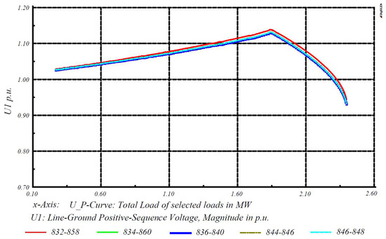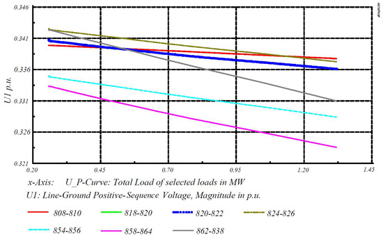 Figure 10 depicts the V-P curve related to the single-phase IEEE 34 node test system. Accordingly, positive, negative, and zero sequence components of voltage are equal, and their values are one-third of the single-phase line voltage value. Briefly, the curves indicate the following facts: