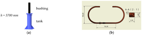 (a) Steel test tank (V = 320 L) with bushing and (b) copper electrode for transformer conductor tests.