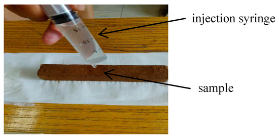 - Sample preparation: to study the anisotropy effect, soils were taken from 8 m below the ground. The original soils were cut in different directions to get a rectangular specimen (Figure 6), and the average dry density of these samples was 1.48 g/cm3. Similarly, different dry density samples of 1.37 g/cm3, and 1.46 g/cm3 to study the loading interval effect and stress-strain relationship. In all tests, the water film transfer method was adopted in the allocation of different water content (Figure 7), and soil samples were sealed in a moisturizing dish for two days to homogenize the water content.