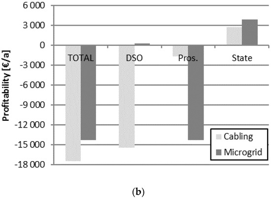The underground cabling and microgrid options may have different influences on the different stakeholders. The same calculation data as in Section 4.1 was used for the assessment of the economic influences of the two options on different stakeholders, DSO, consumer/prosumer, and the state.