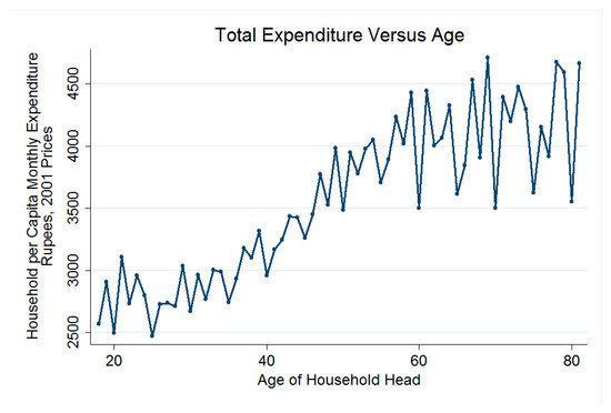 To gain further insight, we present the relationship between the age of household head and household’s expenditure per capita at constant prices in