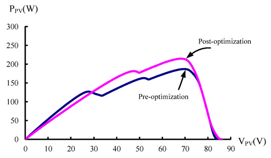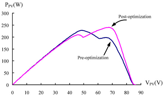 P-V characteristic curve comparison between pre- and post-optimization in Case 2.