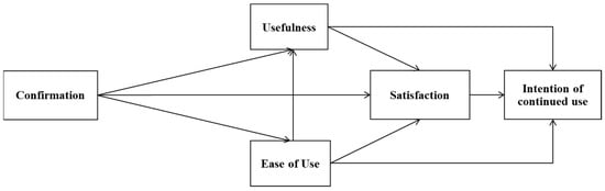 Following ECM-IT, satisfaction arises when people compare their previous expectations with technology performance during actual usage. Confirmation is related to satisfaction because positive confirmation implies realization of the expected benefits of technology use, while disconfirmation denotes failure to achieve such benefits [,]. This relationship has been widely supported in the technology context (see Table 1). For example, Zhou [] found that confirmation of mobile service expectations has a positive impact on satisfaction. Likewise, Hung, Chang [] found that satisfaction with and web-based learning systems is influenced by the confirmation of expectations. Therefore: