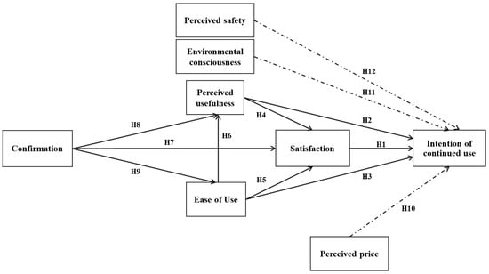The questionnaire is mainly based on previously-used scales, which are adapted to the study context in accordance with the abovementioned domain. The scales of continued usage intention, confirmation, perceived usefulness and satisfaction were based on previous studies by Bhattacherjee [] and Hong, Thong []. The perceived ease of use was measured by adapting the scale used in Bravo, Santana []. The measurement of environmental consciousness was based on a scale developed by Alsmadi []. Likewise, the scale developed by Cho [] was used to measure perceived safety. Finally, the perceived price level was based on a scale developed by Brown and Venkatesh [].