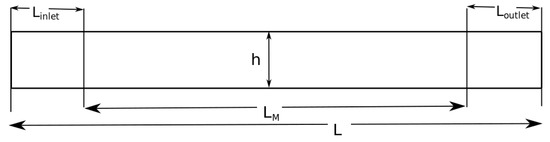 Figure 3 shows a schematic of a channel with characteristic dimensions. The channel includes a small inactive upstream section with the length of in the beginning to remove any entrance effect on flow and allow the flow to become fully developed before entering the active membrane section with the length of . An inactive downstream section with the length of in the end of the channel is introduced to ensure that the created wakes in the downstream of the last corrugation at high Re numbers is far enough from the outlet boundary to prevent any instability due to back flow at the outlet. The height of the channel is denoted h.