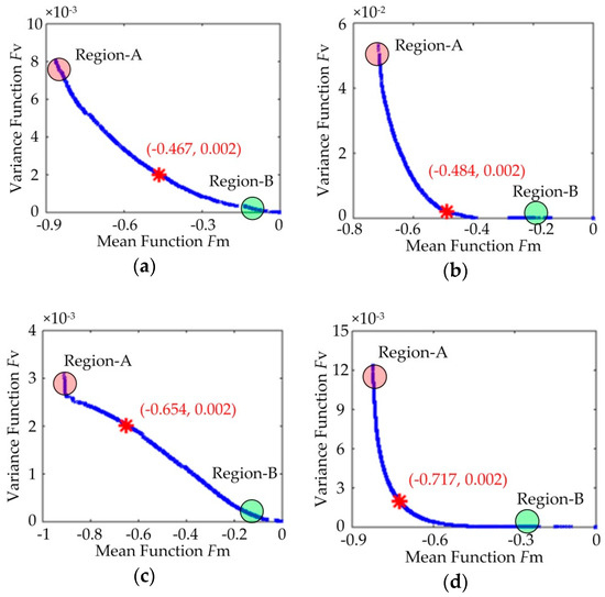Equation (21) is a double-objective optimization problem. In multi-objective optimization, because the objective functions are usually in conflict with each other, the optimal results are a group of Pareto optimal solutions. The Pareto front is the image of the Pareto optimal solutions viewed in objective space, which can offer valuable tradeoff information between objective functions [35,36].