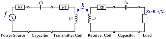 where and are the inductances of the transmitter coil and the receiver coil respectively, and are the resistances of the transmitter coil and the receiver coil respectively, is the coupling coefficient between the coils, and is the angular operating frequency.