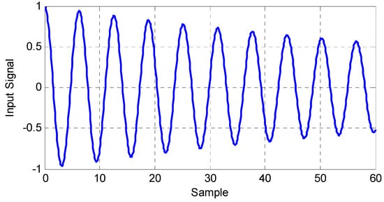 and denotes white noise. The input signal is presented in Figure 4. The estimation results of frequency and damping factor by using different methods are shown in Figure 5 and Figure 6. Figure 7 shows the RMSD comparison of the methods. It can be seen from these simulation results that a better convergence and steady state performance could be obtained if compared with those when using other methods in [3,13,17].