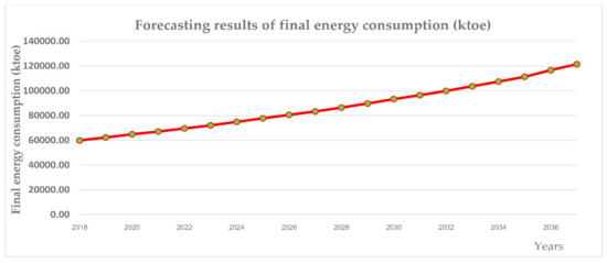 The forecasting results of final energy consumption from 2018 to 2037 in Thailand.