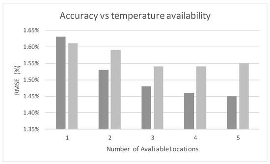 Forecasting error (RMSE) with available temperature location from 1 to 5.